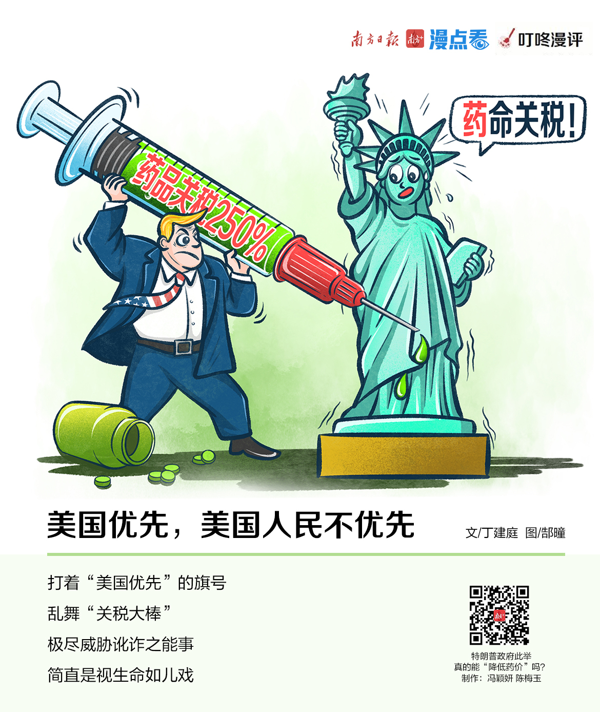 不是“spider漫”开云体育(中国)官方网站,而是“super漫” “漫”看快评风景热门 当地工夫8月5日 好意思国总统特朗普又放狠话了 他称好意思国将对入口药品征收关税 并在一年掌握的工夫内将税率耕种至250% 标的是让药企王人在好意思国脉土坐褥 何等纯熟的套路! 这位自重“关税先生”的好意思国总统 打着“好意思国优先”的旗子 乱舞“关税大棒” 看什么王人以为“好意思国亏欠了” 极尽威逼打单之能事 药品事关东说念主民体魄健康和人命安全 在全宇宙规模内最应该通顺无阻 好意思国对入口药品加征高额关税 到头来影响的是好意思国东说念主民的健康 几乎是视人命如儿戏 完竣不见“好意思国东说念主民优先” 好意思国滥施关税 严重碎裂环球买卖纪律 列国谈论纷错 然则,特朗普一意孤行 还暗示将在“下周掌握” 晓示对半导体和芯片征收关税 看来是要一条说念走到黑 发展不是少数国度的专利 濒临好意思国的经济霸凌 海外社会应互助起来 共同贬抑多样体式的单边目的、保护目的 ■ 更多往期总结>> 绘制/制图:郜曈 案牍:丁建庭 制作:冯颖妍 陈梅玉开云体育(中国)官方网站 |
